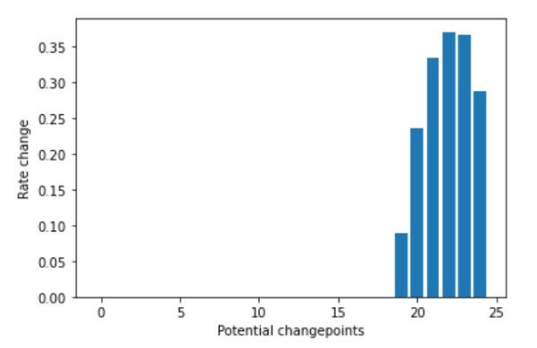 Figure 6: Magnitude of the rate change for each potential changepoint