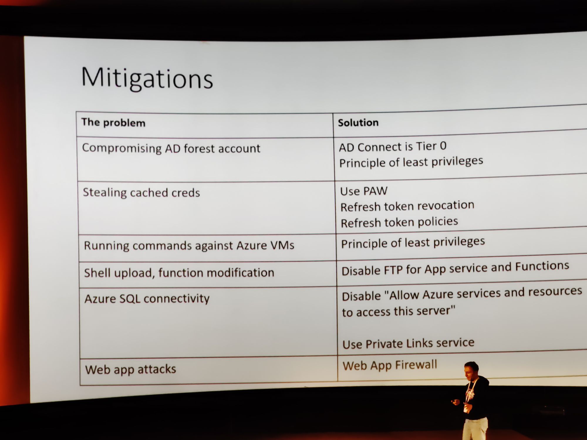 In that same session, Sergey also shared how it's very important to secure any servers or virtual machines hosting the Azure AD Connect controller so that local administrators cannot access it. The server has to be secured in the same way as a domain controller, because underneath it would be able to use the same level of permissions.