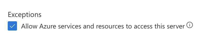 You might have come across the checkbox above when configuring access Azure resources like a SQL Server. And when configuring network access, you might think the checkbox above is a good idea. Personally, I'd assume this would grant network access to this SQL Server from all other Azure resources I've created.